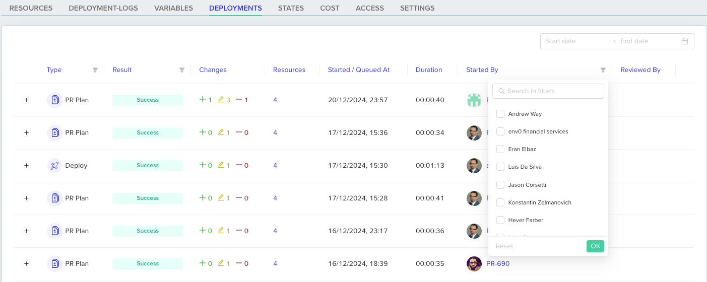 You can now set up cost estimation for Terragrunt run-all executions. env zero uses Infracost to perform cost evaluation on each of the generated plans and combine them together. Learn moreFilter Deployments by User and Status
