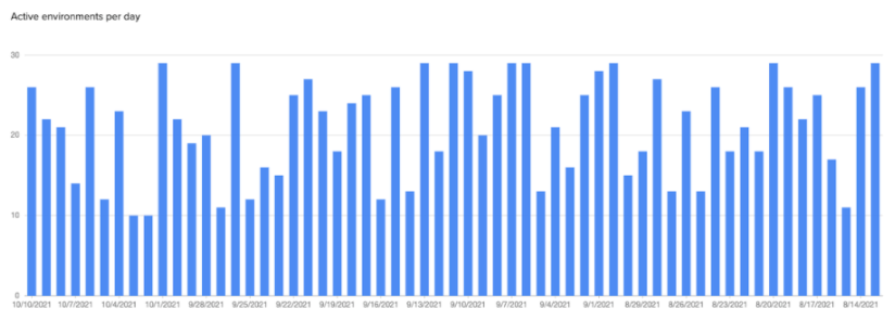 - Active environments per day