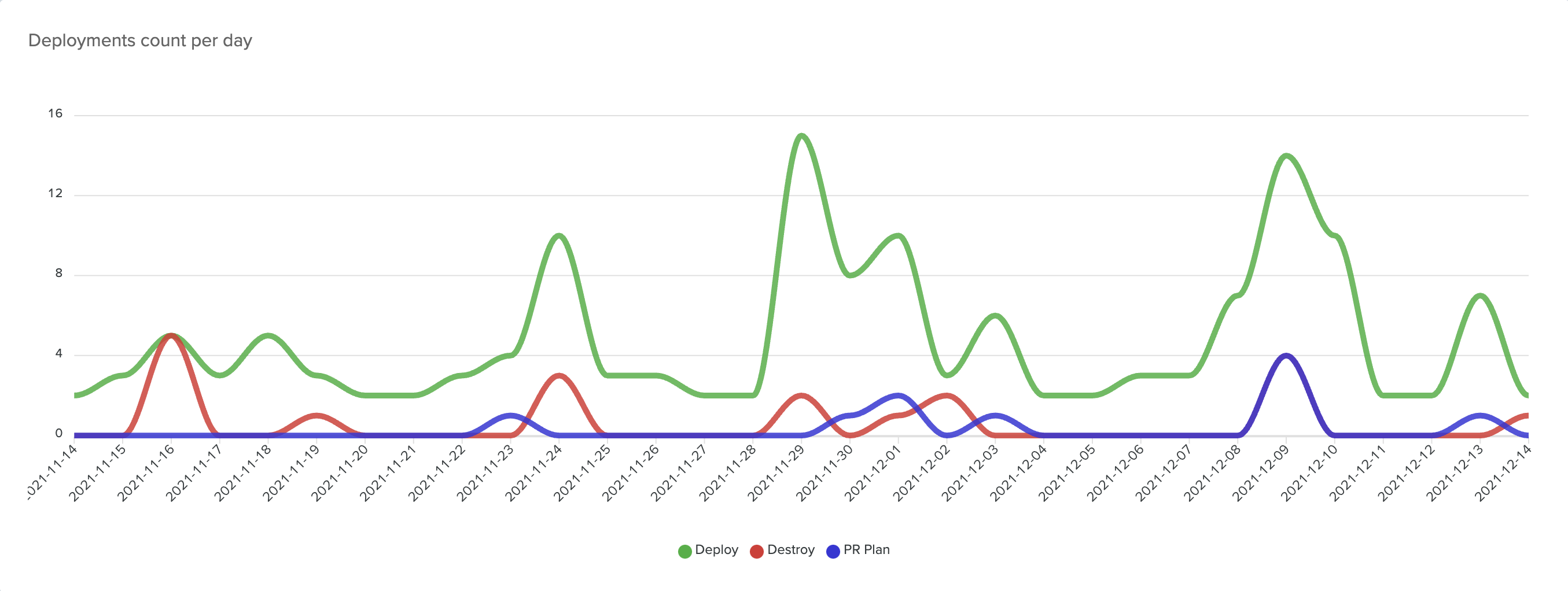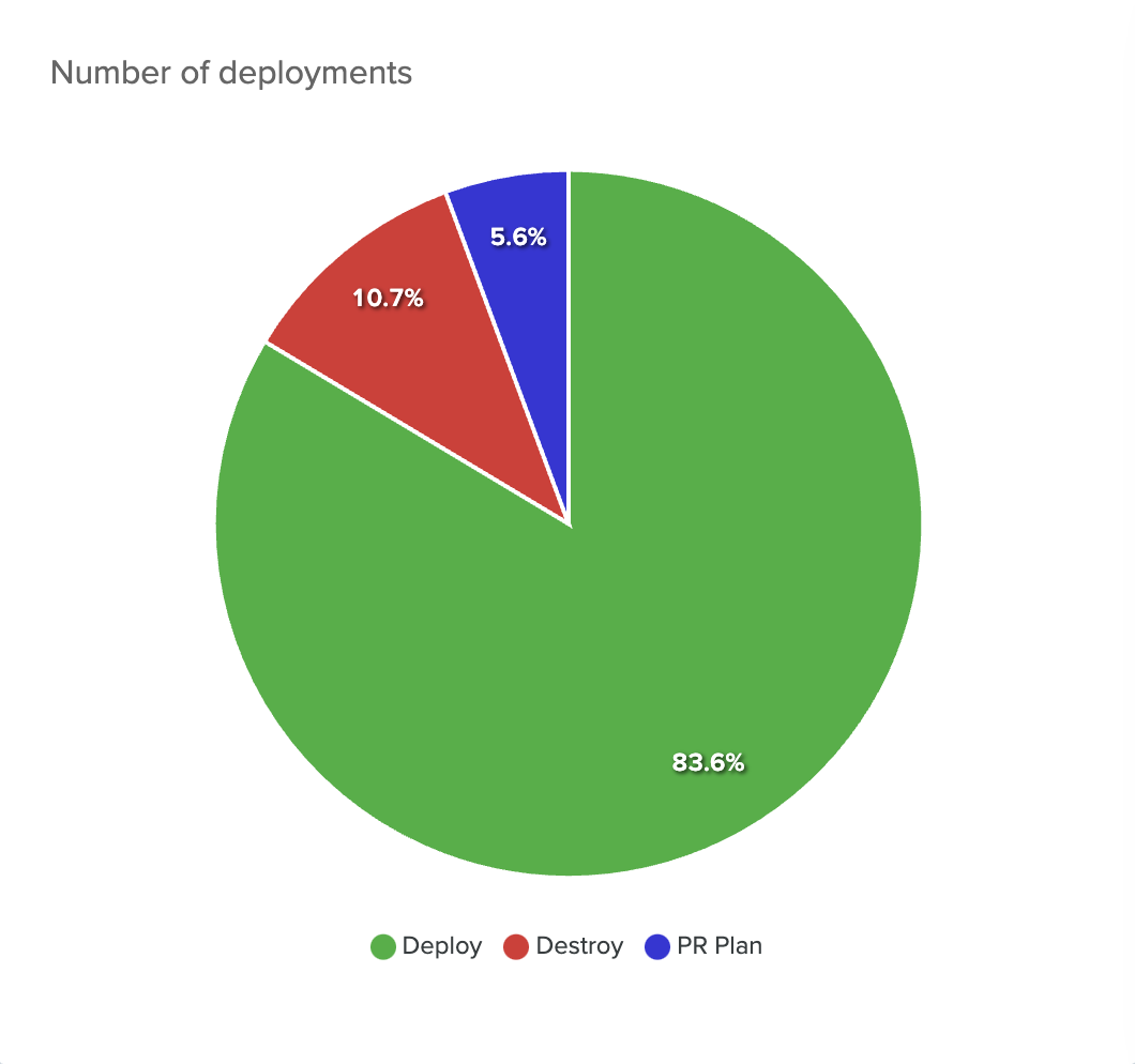 All deployments, sliced by type (Deploy, Destroy, PR Plan). Hovering on it, shows the number.