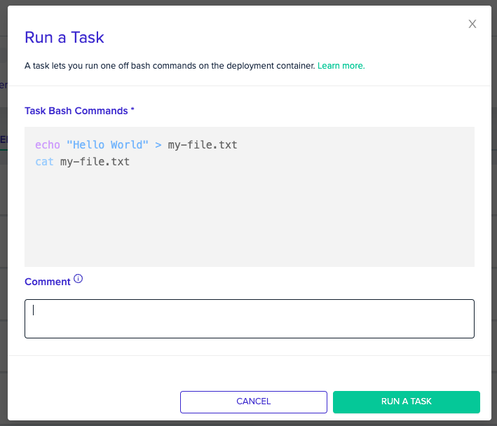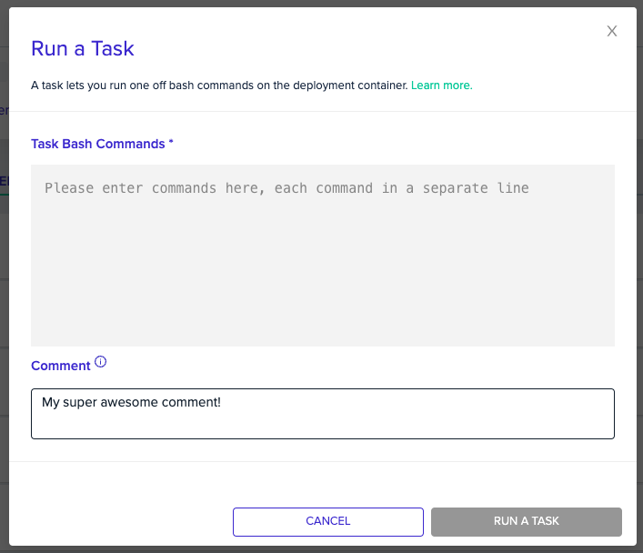 You can add a comment, to let your teammates know why the task was run.Add a comment, by filling in the โCommentโ input down below the