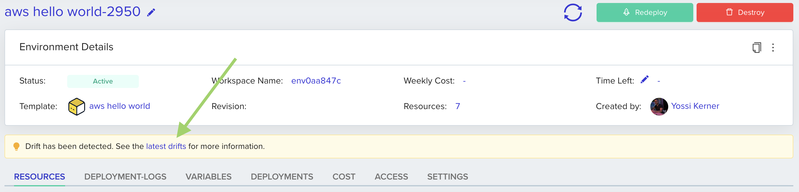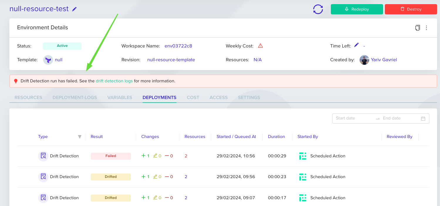 : Drift has been detected; the environmentโs state differs from the IaC configurationNever Run