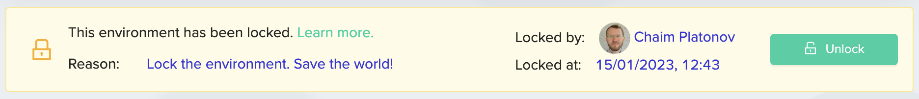 - Environment will not be destroyed due to TTL. After unlocking, a notification will be sent as usual, before the environment is destroyed.
