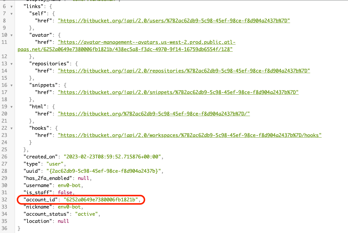 While logged in to your Bitbucket user, visit this URL from your browser. you will receive a JSON from which you will need to extract theaccound_id