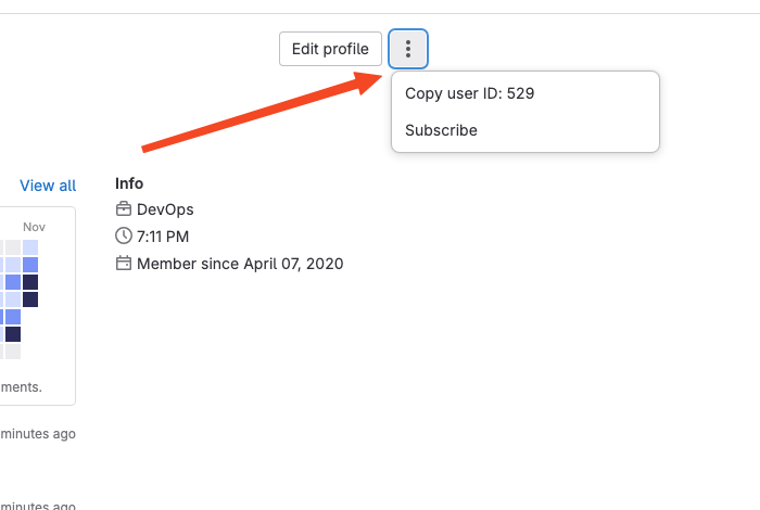 While logged into your GitLab account, navigate to the ‘Profile’ tab and ‘Edit Profile’ or “kebab” menu to find and copy your user ID.