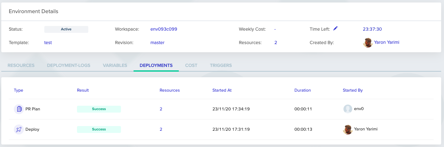 - The environment originated from a VCS-integrated template, and its configured revision is the same as the branch (target) of the pull request