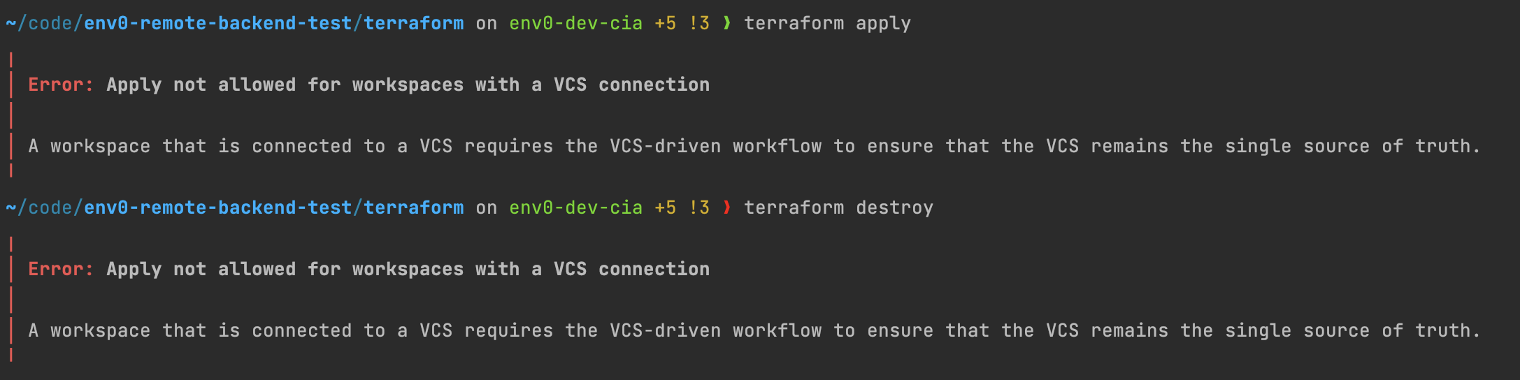 Remote Backend allows running your Terraform plan locally by triggering a remote plan in env zero.The remote plan uses your local Terraform files but actually runs it remotely in env zero while using the shared state and variables set for the env zero environment. Each remote plan creates a deployment in env zero so you will have an audit for each deployment.