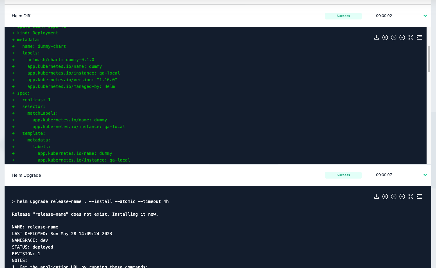 Beyond the common steps such as Clone, Loading variables, etc. Deploy/Destroy Helm deployments contain the following steps:-