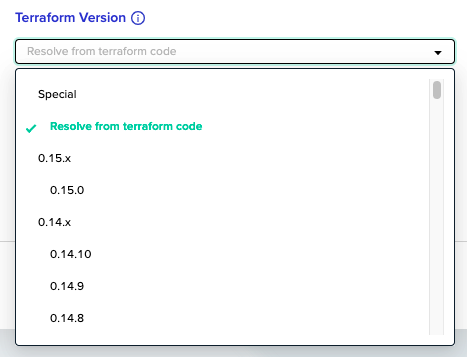 , you can specify the Terraform version you would like your environment to use. It will override the existing value that exists in the template’s dropdown. - For Terragrunt there also exists an environment variable -