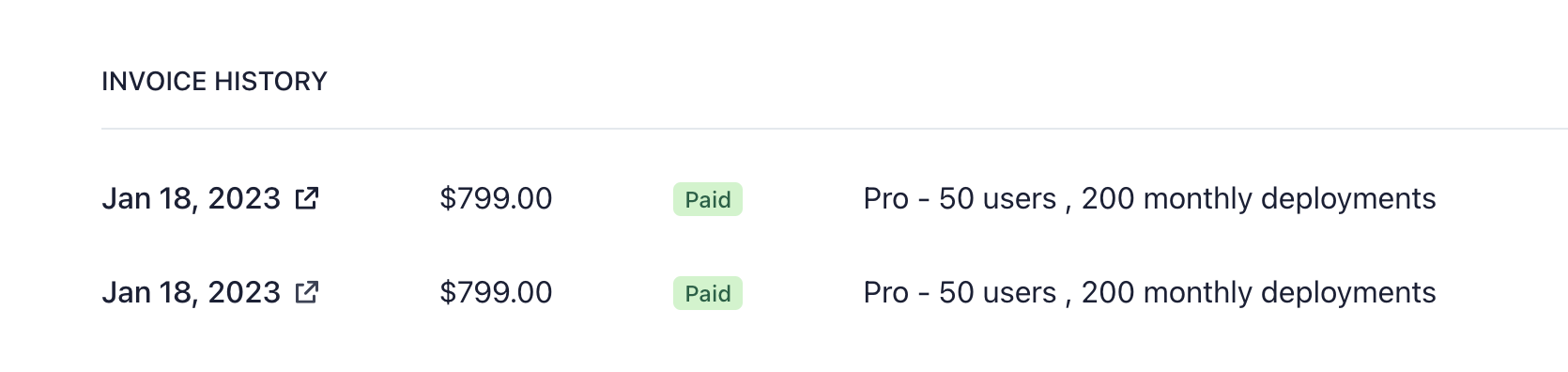 Invoices are easily retrieved by Going into Organization Settings, selecting the Billing tab, and clicking on See Invoices if you are on Enterprise tier.