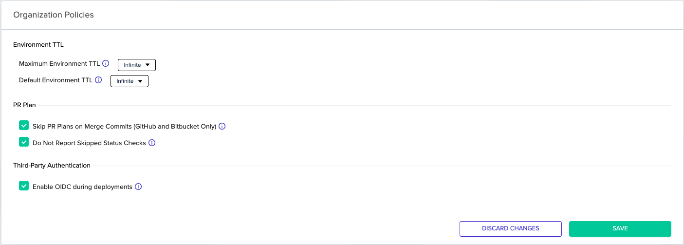 OpenID Connect (OIDC) allows your deployments to exchange short-lived tokens directly from your cloud provider. env zero provides an OIDC token (JWT) as an environment variable. A deployment can use this to access compatible cloud services without a long-lived credential stored in env zero.Enabling OIDC Token Availability