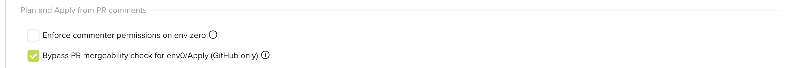 This means all other branch protection requirements (such as required reviews and other CI checks) are still enforced. Only the env zero Apply checks are bypassed.